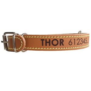 Collar para perro de Cuero Ocre – personalizados con nombre y teléfono. (S-M-L)