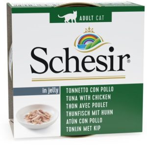 Schesir lata gelatina ATUN CON POLLO para gato 85gr.