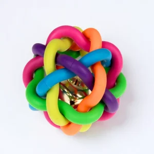 Bola de masticar para perros con campana y colores vibrantes