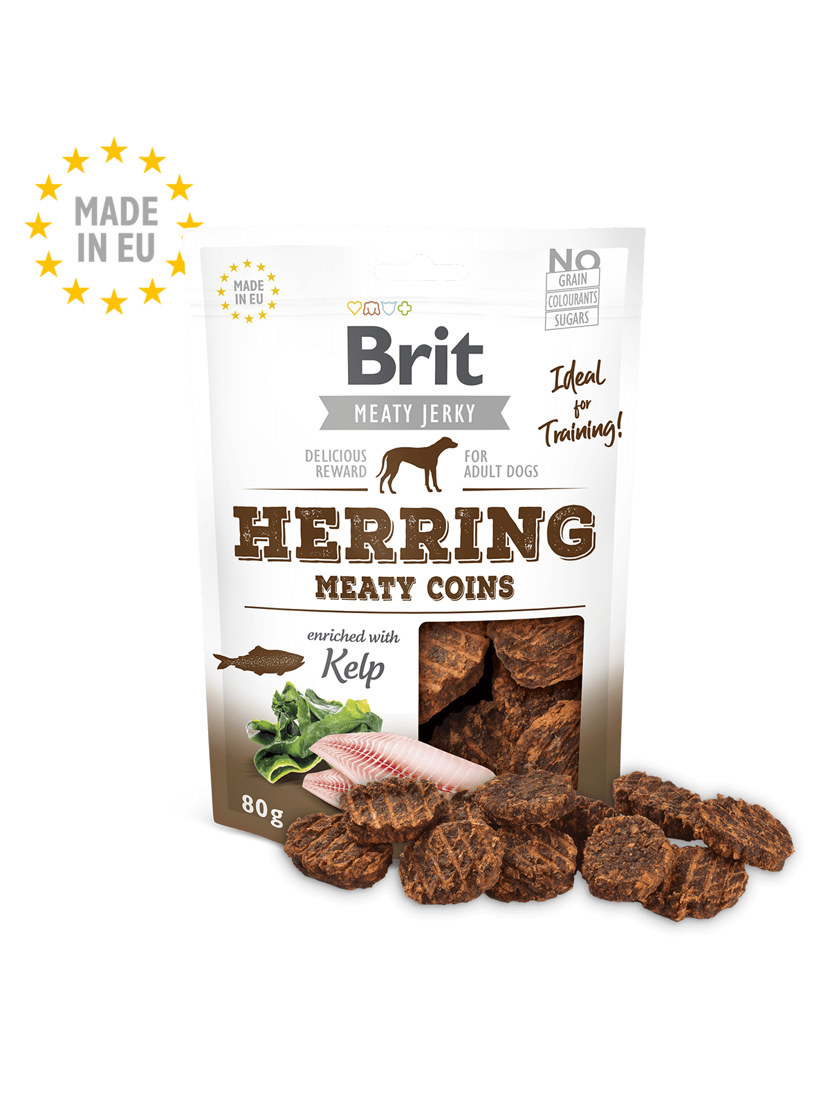 Brit Jerky Snack Arenque Meaty coins, snack para perros en thepetshopboys.es la tienda de su mascota.