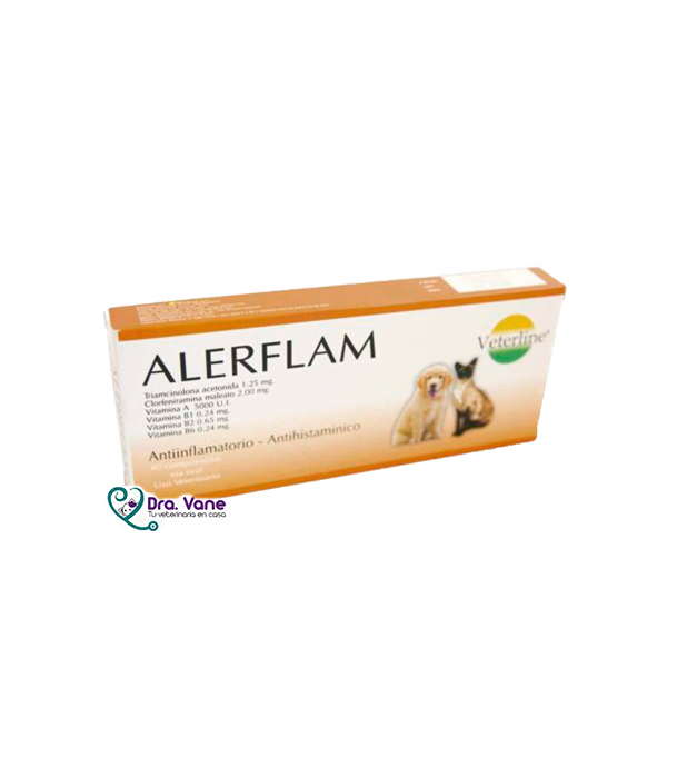 La dosis de Alerflam en los felinos domésticos es a razón de 1/4 del comprimido por cada 5kg una vez al día, repartiendo la dosis en dos tomas. Se recomienda una dosificación de media dosis diaria , cada 12 horas.