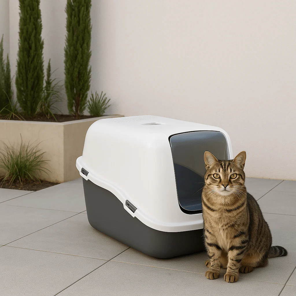 Este arenero para gato con diseño cerrado garantiza privacidad y control de olores. Su bandeja extraíble facilita la limpieza diaria, y su forma ergonómica evita derrames de arena. Ideal para gatos grandes o pequeños. Perfecto para mantener la higiene del hogar con estilo.