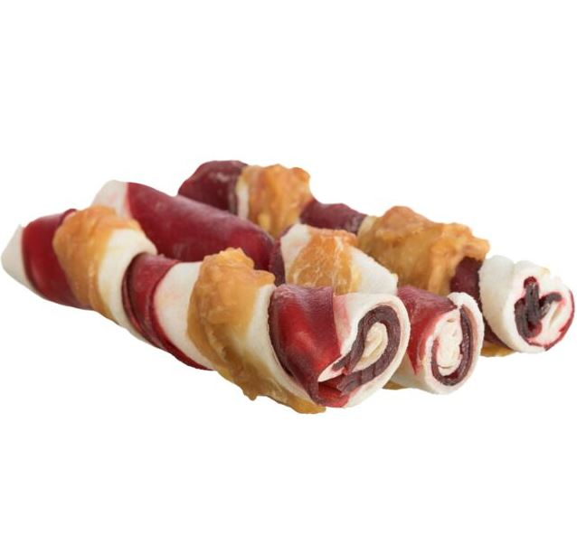 Los BBQ Pollo Denta Fun 3 Rolls son un snack natural para perros, elaborado con piel de vacuno cubierta de filete de pollo. Su textura y grosor están diseñados para proporcionar un mayor tiempo de masticado, ayudando a mantener la higiene dental de tu mascota de forma natural.