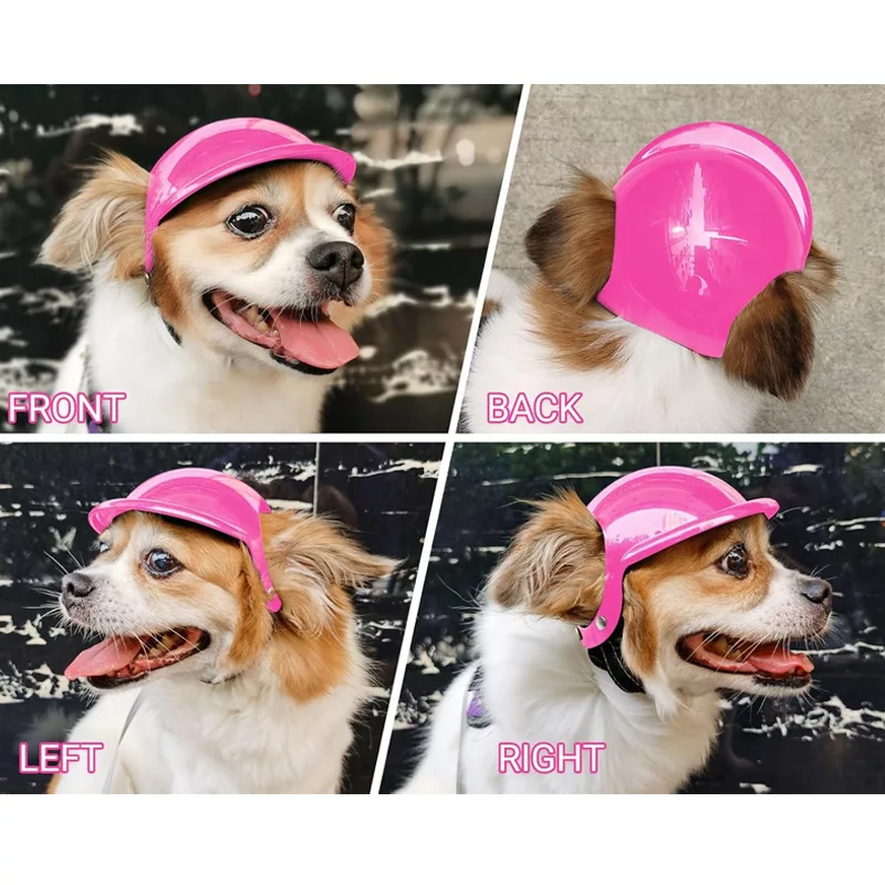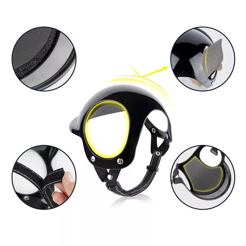 Nuestro casco y gafas para perro están diseñados con correas en la barbilla y la cabeza. Se ajustarán perfectamente y permanecerán en su lugar durante los paseos.
