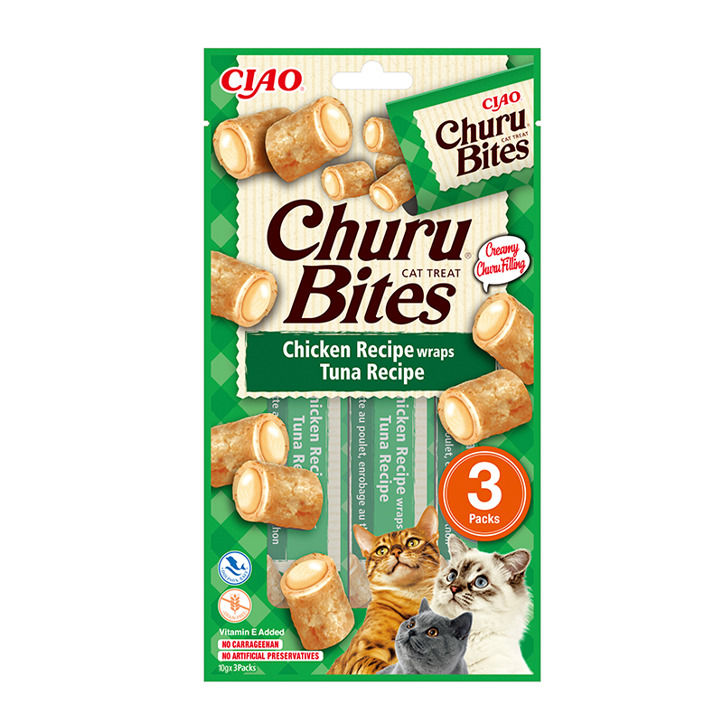 Snacks o premios húmedos para gatos, fabricados por la compañía japonesa Inaba. Son conocidos por su textura cremosa y líquida, similar a un puré. Los churus son una buena opción para complementar la nutrición de los gatos, mantenerlos hidratados y pueden ser utilizados para esconder medicación o para darle una experiencia más divertida a la comida.