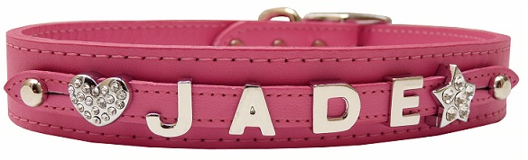 Collar personalizado fashion cuero mate rosa. Le podrá agregar hasta dos accesorios.