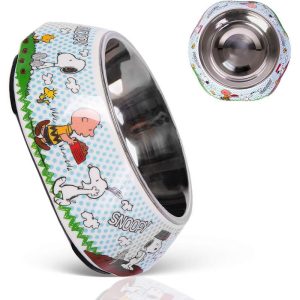 Este divertido comedero para perros decorado con dibujos de Snoopy está fabricado con polímero de melamina, un material plástico no tóxico termoestable y resistente. Su base además, es antideslizante, lo que ayuda a evitar que tu mascota arrastre el comedero mientras come o bebe, incomodándole y haciendo que sea muy difícil el acceder a su contenido.