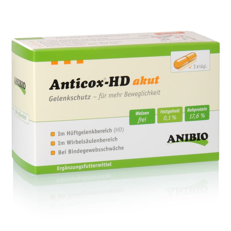 Anticox-HD Akut se puede aplicar en perros y gatos. También se puede administrar, por ejemplo, en perras embarazadas a partir del vigesimoprimer día del embarazo, en cachorros a partir de la novena semana, en perros mayores o en los que hayan sufrido operaciones de tendones o articulaciones.