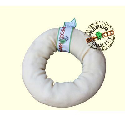 Los Donut Dental Rawhide de Farmfood son aros masticables hechos de piel de vacuno.
