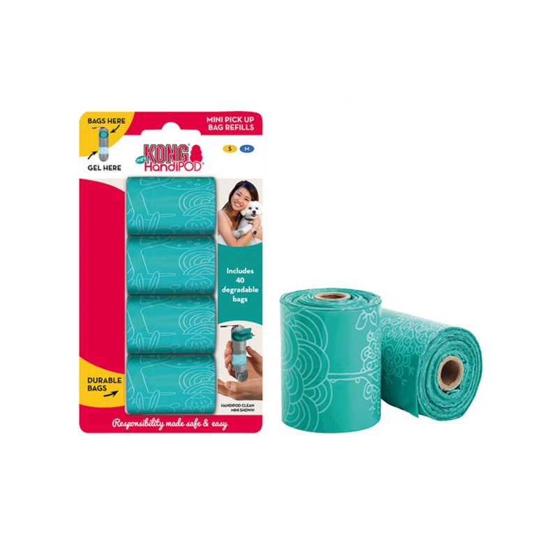 Kong HandiPod Recambio Bolsitas. Recambio de bolsitas Kong. Contiene 4 rollos de 10 bolsitas. Compatibles con los dispensadores de bolsitas Kong HandiPop. Kong HandiPod Dispensador Bolsitas Gel y Kong HandiPod Dispensador Bolsitas Linterna