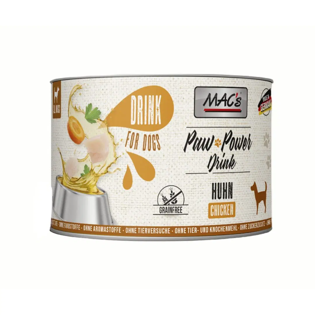 MAC’s Perro Paw Bebida Energética Pollo es un suplemento alimenticio para perros elaborado con ingredientes de alta calidad que complementa su dieta diaria, proporcionando nutrientes esenciales. La versión de pollo se refina con zanahorias, que son una gran fuente de fibra, vitamina A y betacaroteno. La inulina que contiene favorece la salud ósea y puede proteger contra enfermedades cardiovasculares.