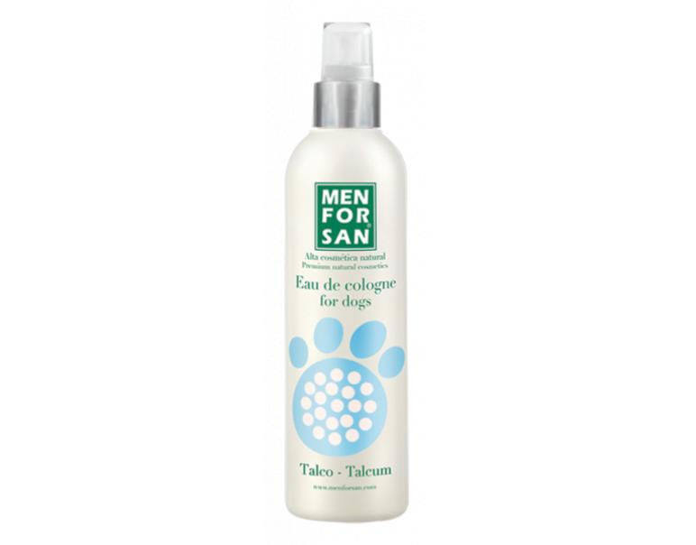 Colonia Menforsan para perros con fragancia de talco. Formulada con aromas naturales para proporcionar a nuestras mascotas un olor fresco a la ve que intenso para actuar como desodorante contra los malos olores.