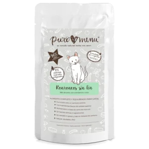 El Menú Bigotes Felices Bio (Vacuno) de Puromenu es un alimento ecológico cocido completo y equilibrado para gatos, formulado especialmente para proporcionar una dieta natural y nutritiva. Contiene un 96% de carne de vacuno, lo que lo convierte en una excelente fuente de proteínas de alta calidad, esenciales para mantener la musculatura y el bienestar general de tu gato. La receta incluye no solo carne, sino también órganos como hígado y corazón de vacuno, así como calabaza y ortiga, que aportan fibra, antioxidantes y nutrientes esenciales como el hierro, beneficiosos para la salud renal y digestiva.