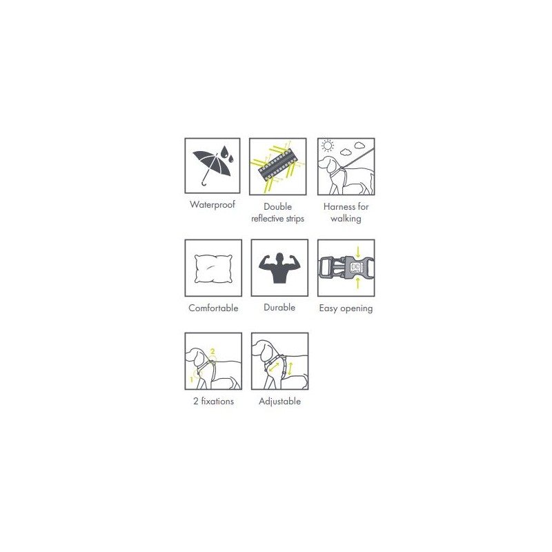 Talla S: Ancho: 2 cm / Cuello: 30 – 45 cm / Pecho: 35 – 60 cm / Max. 27 Kg