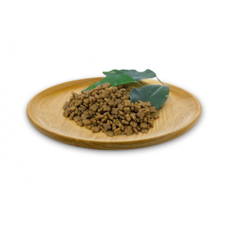 Composición: Carne fresca de pollo, Carne deshidratada de pollo y pavo, Patata, Aceite de Pollo, Hidrolizado de hígado de pollo, Guisantes,