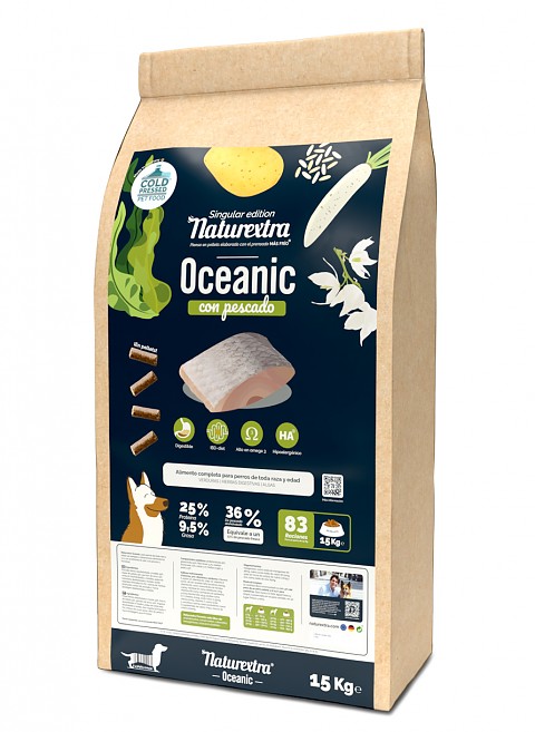 En el Natural-Extra Oceanic®, al igual que en todos los alimentos Natural-Extra®, se encuentran todos los componentes vitales que obtendría un perro salvaje o un lobo alimentándose en la naturaleza. Estos componentes cubren todas las necesidades vitales de nuestros perros.