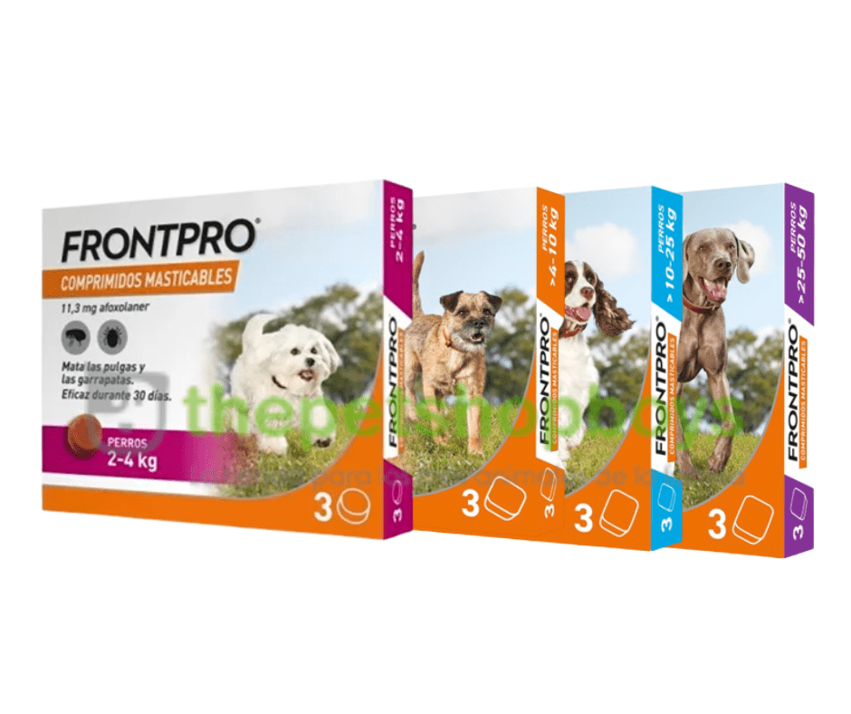 - 3 comprimidos masticables de Frontpro 2 a 4 kg: Afoxolaner 11,3 mg.