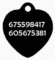Placa para perros y gatos con diseño y nombre por un lado y teléfonos por el otro. Podrá colocar nombre y hasta 2 teléfonos en esta placa.