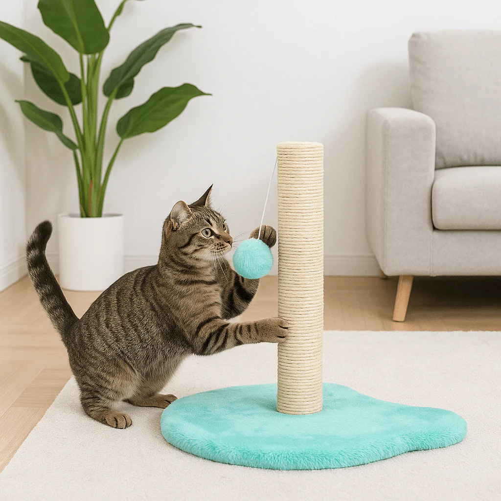 Su combinación de sisal, plataforma y juguetes ofrece una experiencia completa, perfecta para prevenir conductas destructivas como arañar sofás o cortinas