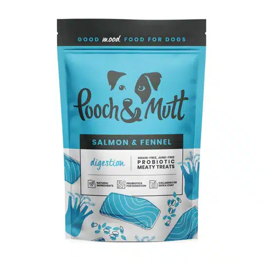 Snack probiótico de salmón y algas ha sido elaborado por la prestigiosa marca inglesa Pooch & Mut especializada en alimentación y suplementación para perros y gatos.