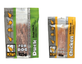 Snack Kiwi de filetes de Pato 100% es ideal para entrenar o simplemente para mimar a tu pequeño ya que es apta para perros y gatos.