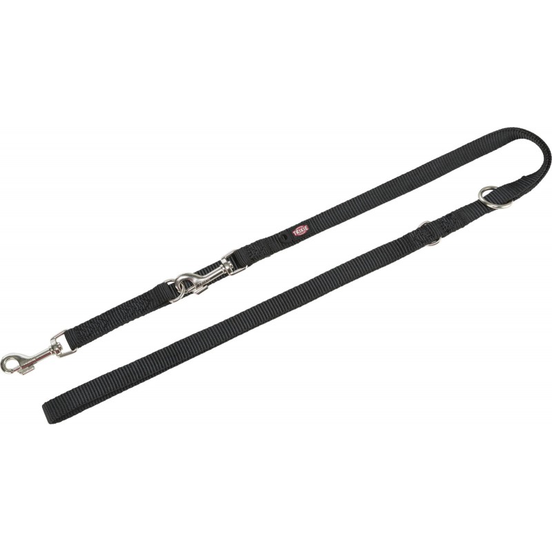 Trixie Ramal Premium. Correa plana con 3 posiciones de ajuste. Cuenta además con un enganche adicional que puede usarse, por ejemplo, para la placa identificativa. El ramal es la correa ajustable en tres posiciones. Con el ramal, podrás controlar la distancia a la que quieres llevar a tu mascota, sí como enganchártelo a la cintura o como bandolera para pasear a tu perro con las manos libres.